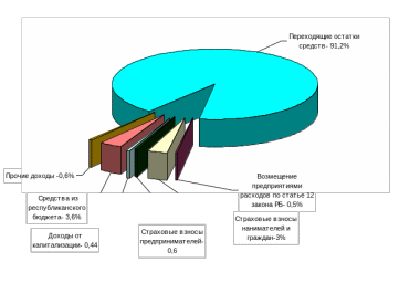 Структура доходов Фонда в 2005 году показана на рис. 1. Хорошо видно, что основная часть доходов складывается из страховых взносов (более 90%). Существенная часть доходов (4,4%) получена от капитализации временно свободных остатков средств путем вложения их в депозиты банков и покупки государственных казначейских обязательств. Остальные составляющие доходной части не имеют заметного значения.