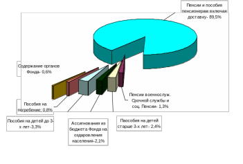 Расходная часть Фонда показана на рис. 2. Наибольшая часть расходов - это расходы на выплату пенсий, доля которых в общей сумме расходов составила около 89%.