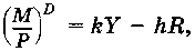 h — чувствительность (эластичность) изменения спроса на деньги к изменению ставки процента R — положительный параметр (h > 0), показывающий, на сколько изменяется спрос на деньги при изменении ставки процента на один процентный пункт