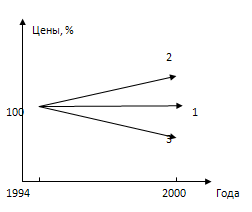 Ценовой тренд 3, который обозначен нисходящей линией, свидетельствует о недостаточной монетизации экономики. При этих условиях уровень равновесия между спросом и предложением на товарных рынках и средний уровень цен будет снижаться.