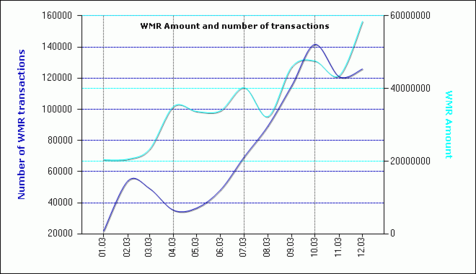 Количество операций WMR - 2 427 013,Средняя сумма одной операции приблизительно равна 56 долларам.
