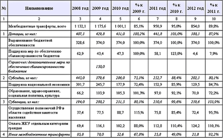 Таблица 8 Межбюджетные трансферты из федерального бюджета бюджетам субъектов Российской Федерации в 2008-2012 годах (млрд. руб.)