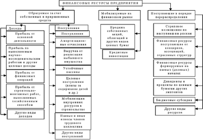 Структура финансовых ресурсов определяется источниками их поступления, что представлено на рис.1.1. Подробнее остановимся на финансовых ресурсах организации. Источниками образования финансовых ресурсов предприятия являются:
