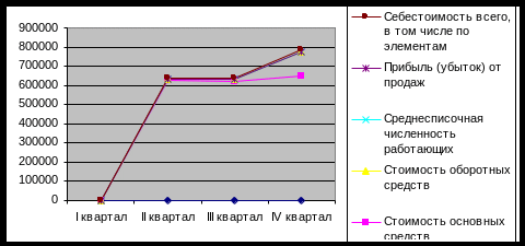 Графическая интерпретация динамики абсолютных показателей выручки предприятия, стоимости основных средств, стоимости оборотных средств, себестоимости и прибыли от продаж приведена на рис. 2.1.