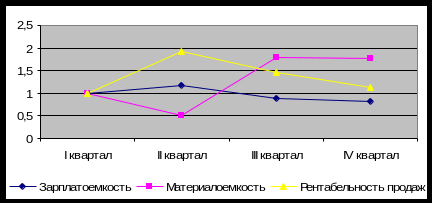 Рис. 2.5 Динамика зарплатоемкости, материалоемкости и рентабельности продаж