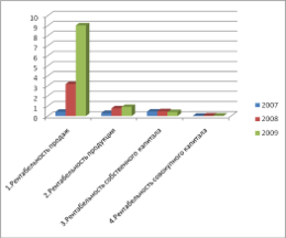 Наименее рентабельным был 2007 год, самым же рентабельным является 2009 год, это произошло за счет увеличение чистой прибыли по предприятию в целом, при этом получая убыток от продаж в течении всех трех лет.