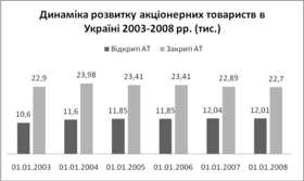 Динаміку розвитку акціонерних товариств в Україні з 2003 по 2008 рр. показано на діаграмі 1.