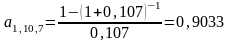 Рассмотрим облигации 2 типа. Номинальная стоимость этих облигаций 100 руб. Срок обращения облигаций – пять лет, а купонная ставка составляет 12%. Коэффициент приведения рентных платежей и курсовую стоимость на 2008 год определяем по формулам (3) и (4):