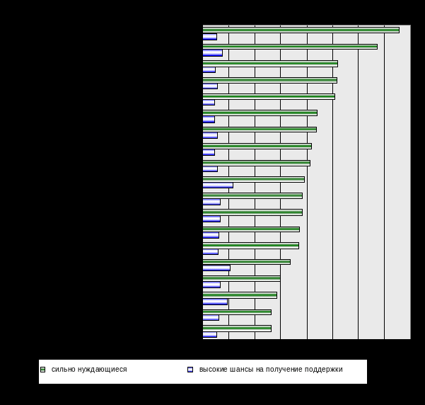 Если взглянуть на оценку предпринимателями шансов получить эти виды поддержки, то ситуация здесь также не очень обнадеживающая.