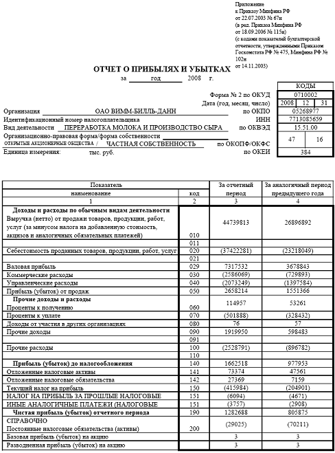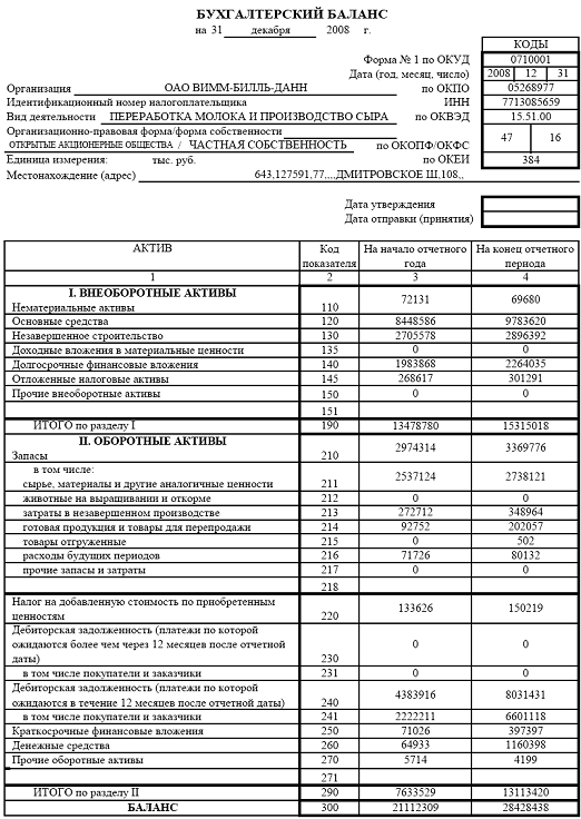 Финансовое состояние ОАО «Вимм-Билль-Данн» на конец отчётного периода нормально устойчивое. За отчётный период предприятие улучшило своё финансовое состояние – на начало года оно было неустойчивым.