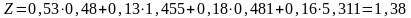 По модели Лиса величина Z-счета для анализируемого предприятия равна: