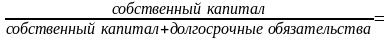 Коэффициенты структуры долгосрочных источников финансирования. Определяя значение данных показателей, в расчет принимаются только долгосрочные источники средств. В эту подгруппу входят два взаимодополняющих показателя: коэффициент долгосрочного привлечения заемных средств и коэффициент финансовой независимости капитализированных источников, исчисляемых по формулам: