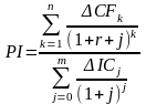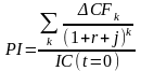 Якщо проект припускає не разову інвестицію, а послідовне інвестування фінансових ресурсів протягом m років, то формула для розрахунку PI. модифікується в такий спосіб (з врахуванням впливу інфляції як на дисконтовані потоки інвестиції, так і на генеровані потоки прибутку інвестиційного проекту):
