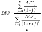 При враховуванні часового аспекту в розрахунок приймаються грошові потоки, дисконтовані по показнику WACC, а відповідна формула для розрахунку дисконтованого строку окупності (DPP) має вид: