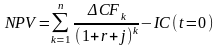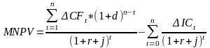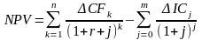 Якщо проект припускає не разову інвестицію, а послідовне інвестування фінансових ресурсів протягом m років, то формула для розрахунку NPV модифікується в такий спосіб (з врахуванням впливу інфляції як на дисконтовані потоки інвестиції, так і на генеровані потоки прибутку інвестиційного проекту) [6]: