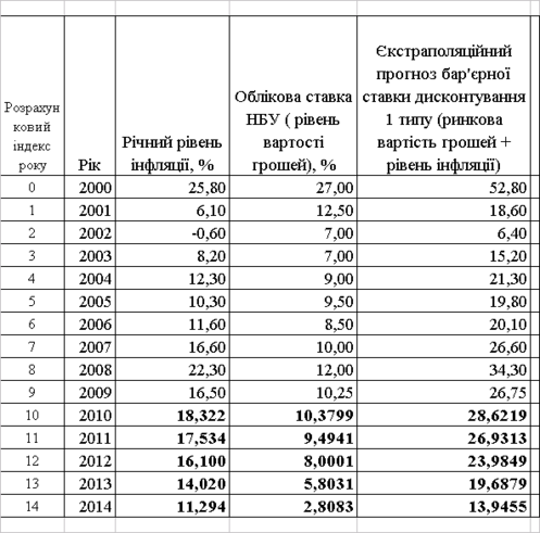 Для розрахунку та прогнозу бар’єрних ставок дисконтування використані статистичні матеріали Національного банку України та Державного комітета статистики України за 2000–2009 роки.