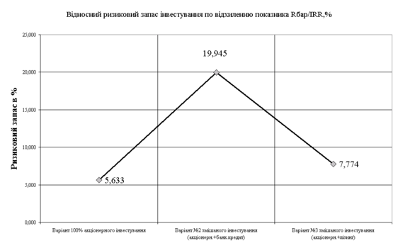 Таким чином, варіант №2 проекту – змішане фінансування акціонерним капіталом та банківським кредитом – має оцінки найменшого ризику реалізації.