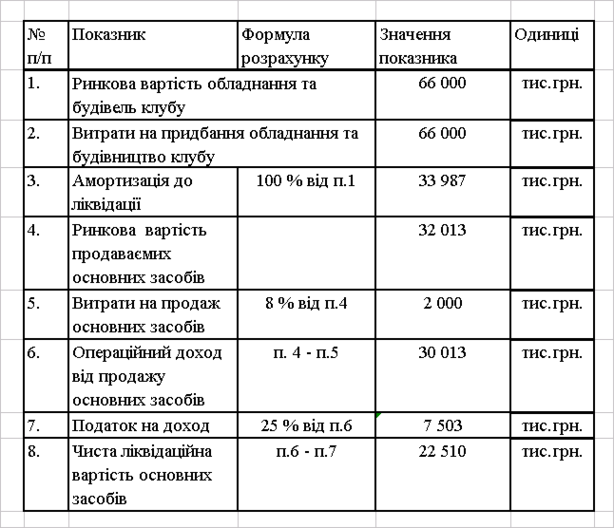 – на момент ліквідації підприємство має на рахунках чистого прибутку 17,1 тис. грн., які є додатковими сумарними кумулятивними дивідендами інвесторів за 5 років проекту.