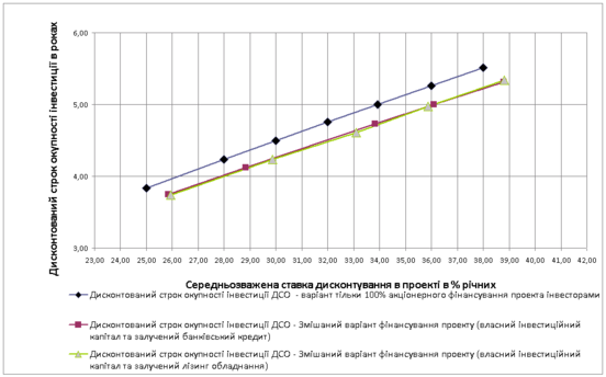 Рис. 2.6. Результати оцінки чутливості дисконтованого строку окупності інвестиції DPP(ДСОІ)