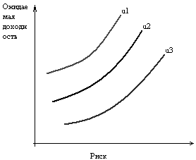Для формирования инвестиционного портфеля главным является определение инвестиционной цели инвестора. Согласно современной теории портфеля цели инвестора проявляются в его отношении к риску и ожидаемой доходности. Одним из широко применяемых методов определения таких целей является построение кривой безразличия (indifference curve), характеризующей предпочтения инвестора. На рис. 1 обозначены кривые безразличия u1, u2, u3. На горизонтальной оси откладывается значение риска, а на вертикальной – ожидаемые доходности.