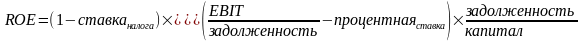 Из зависимостей (2) и (3) имеем взаимосвязь коэффициентов доходности капитала, доходности активов и финансового рычага, которая может быть представлена как:
