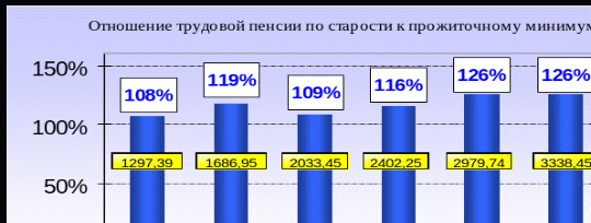 Анализ средних размеров пенсий свидетельствует, что за период с 01.01.2002 по 01.01.2008 повысилось соотношение средних размеров пенсий по старости в сравнении с прожиточным минимумом. Значительное увеличение прожиточного минимума за 1 квартал 2008 года в связи с установлением единого по краю, включая Эвенкию и Таймыр (ранее прожиточный минимум для данных территорий устанавливался отдельно), с 01.07.2008 повлекло снижение соотношения среднего размера пенсии по краю к прожиточному минимуму.