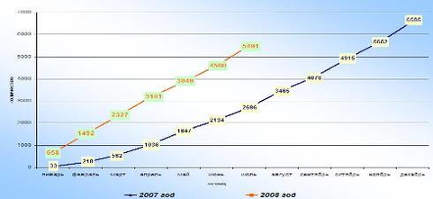 Диаграмма 7 – Динамика приема заявлений о выдаче государственного сертификата на материнский (семейный) капитал в 2007-2008 гг. (на 01.08.2008)