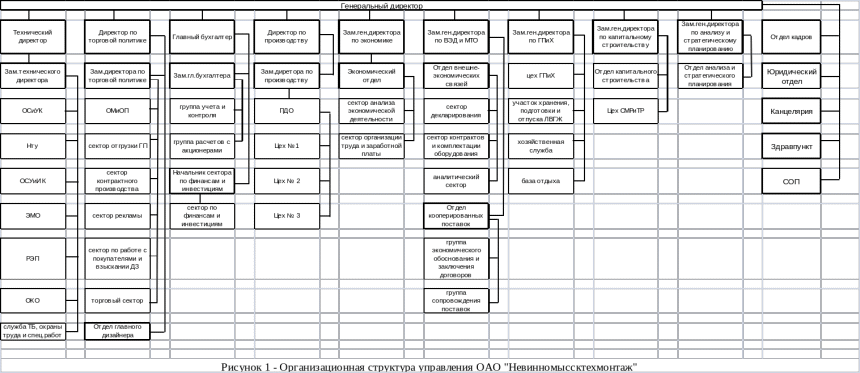 В основу структуры управления положена определенная система – линейно-функциональная, она представляет собой схему подчинения нижестоящего подразделения ряду функциональных подразделений, решающих отдельные вопросы управления - технические, плановые, финансовые и т.д.