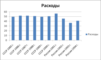 Рис. 2.4 Динамика расходов бюджетов СССР и России в период с 85-ого по 94-ый гг.
