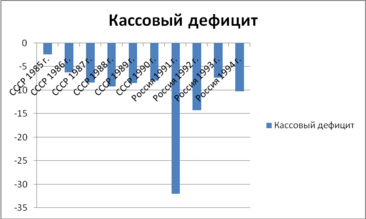Рис. 2.5 Дефицит бюджетов СССР и России в период с 85-ого по 94-ый гг.