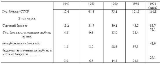 Следует отметить, что местные бюджеты (бюджеты автономных республик, краевые, областные, городские, районные, а с 1929—1930 гг. — сельские бюджеты) не включались в состав бюджетов союзных республик и в государственный бюджет СССР.