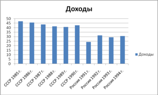 Рис. 2.3 Динамика доходов бюджетов СССР и России в период с 85-ого по 94-ый гг.