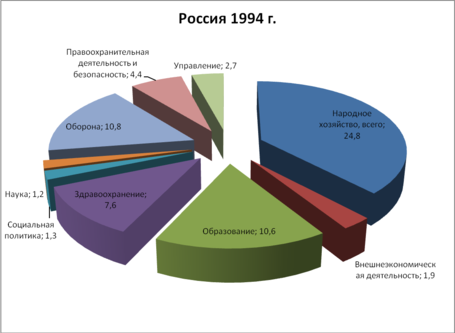 Рис. 2.1 показывает, что практически до распада СССР его главными бюджетными расходами оставались народное хозяйство, социальная политика и образование, что говорит о высоком социальном обеспечении населения.