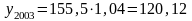 | 2002 | 106 | +6 | 1,06 | 1,155 | 115,5 | 15,5 |