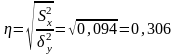 Рассчитаем эмпирическое корреляционное отношение по формуле: