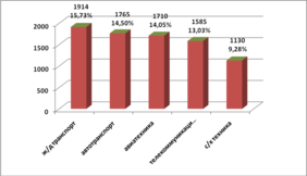 Основная доля сделок в 2010 году пришлась на лизинг железнодорожного транспорта - 15,73%, а также лизинг грузового и легкового автотранспорта - 14,59%. Указанные сегменты почти удвоили свою долю на рынке по сравнению с 2009 годом и в совокупности составили около 50% рынка. По оценкам аналитиков «Эксперт РА», сегмент лизинга железнодорожного транспорта имеет потенциал двукратного роста в абсолютном выражении к 2010 году, кроме того, хорошие перспективы есть у лизинга недвижимости и сельскохозяйственной техники.