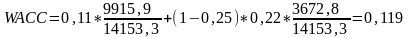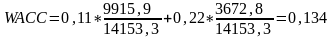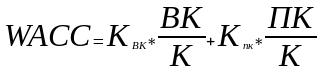 Вартість капіталу в нашому випадку розрахуємо на основі середньозваженої вартості капіталу ( WACC) за наступною формулою: