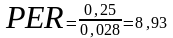 де PER – відношення ринкового курсу до чистого прибутку на одну акцію.