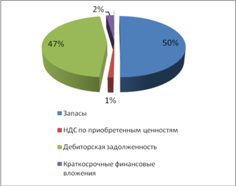 На рисунке 4 наглядно представлена структура оборотных активов ОАО «ЧЗСМ» в 2010 г. Наибольший удельный вес приходится на запасы, что скорее всего обусловлено нерационально выбранной финансовой стратегией, вследствие которой значительная часть текущих активов иммобилизована в запасы, чья ликвидность может быть не высокой.