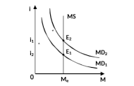 1) поддержание заданного количества денег в экономике. В этом случае кривая предложение денег является вертикальной линией, что характеризует постоянство количества денег в стране. Национальный банк проводит жёсткую кредитно-денежную политику, имеющую целью установить контроль над денежной массой. В условиях такой политики любое колебание спроса на деньги будет приводить к соответствующим изменениям ставки процента.