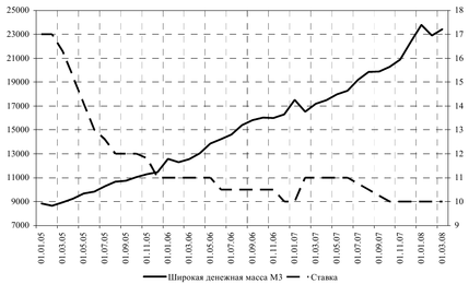 Рисунок 8. Сравнение денежной массы и ставки рефинансирования