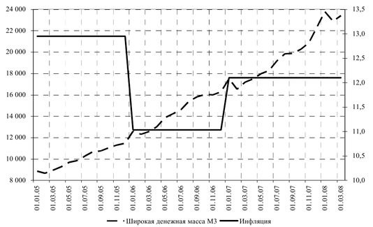 Рисунок 7. Сравнение денежной массы и инфляции