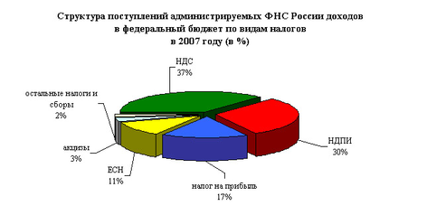 Основная масса администрируемых ФНС России доходов федерального бюджета обеспечена поступлениями НДС (37%) и налога на добычу полезных ископаемых (30%).