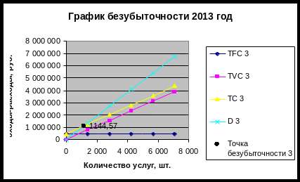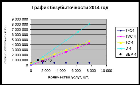 На графиках отображена динамика изменения таких показателей, как TFC, TVC, TC, D, BEP. В результате ежегодных снижений TFC, ТС, увеличения D, точка безубыточности или порог рентабельности смещается влево по оси X, уменьшаясь.