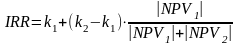 k2 - ставка дисконта, при якій NPV = NPV2 (NPV2 < 0)