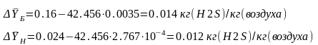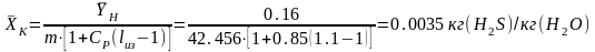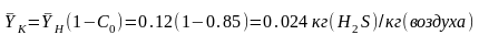 Конечная концентрация сероводорода в газе рассчитывается из регламентированной степени улавливания по формуле: