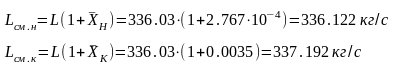 Расходы поглощающей смеси на входе и выходе абсорбера, соответственно