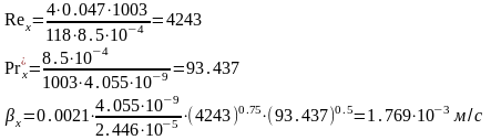 -- коэффициент массоотдачи в жидкой фазе, м/с.