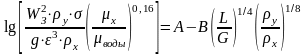 -- модифицированный критерий Рейнольдса для стекающей по насадке пленки жидкости;