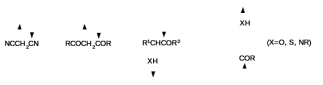 Примеры компонентов, часто используемых при синтезе гетероциклов, приведены на рис. 4. Соединения, содержащие карбонильную группу (альдегиды, кетоны, хлороангидриды, эфиры карбоновых кислот, а также другие соединения) широко используются как электрофилы.